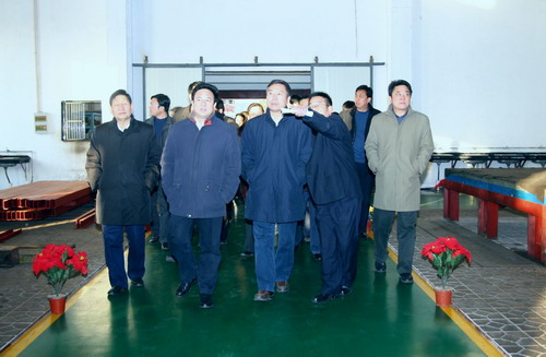 集團公司副總經(jīng)理閔龍及有關專家在副局長薛衛(wèi)的陪同下到三通公司機加車間實地參觀。