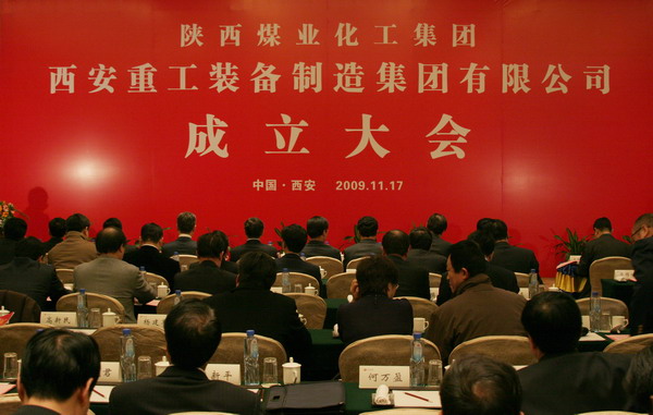 11月17日下午,陜西煤業(yè)化工集團有限責(zé)任公司西安重工裝備制造集團有限公司,在西安建國飯店會議中心二樓隆重召開成立大會。陜西省副省長吳登昌,陜西煤業(yè)化工集團有限責(zé)任公司董事長、黨委書記華煒出席,并為西安重工裝備制造集團有限公司揭牌表示祝賀。陜西煤業(yè)化工集團領(lǐng)導(dǎo)及機關(guān)各部門、所屬單位負責(zé)人到會祝賀。國家發(fā)改委經(jīng)濟研究院產(chǎn)業(yè)經(jīng)濟研究所、中國工程院、中國煤礦機械工業(yè)協(xié)會、省市有關(guān)部門以及省外有關(guān)單位的領(lǐng)導(dǎo)參加了大會。西安重工裝備制造集團有限公司執(zhí)行董事、黨委書記王增強主持大會。