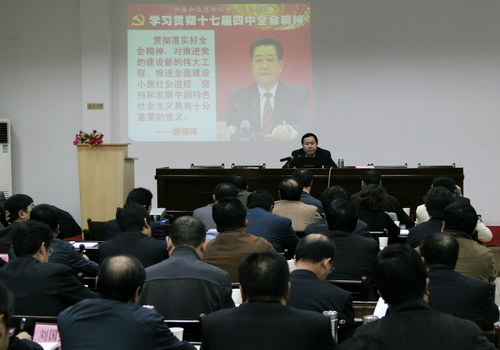 2009年11月9日,陜西煤業(yè)化工集團公司領導及后備干部學習十七屆四中全會精神培訓班在省委黨校開班。省委黨校副校長秦國剛、煤業(yè)化工集團黨委副書記馬富元出席開班儀式并講話。煤業(yè)化工集團黨群工作部部長夏迎廣主持。 參加本期培訓學員共計45人,培訓時間為30天。