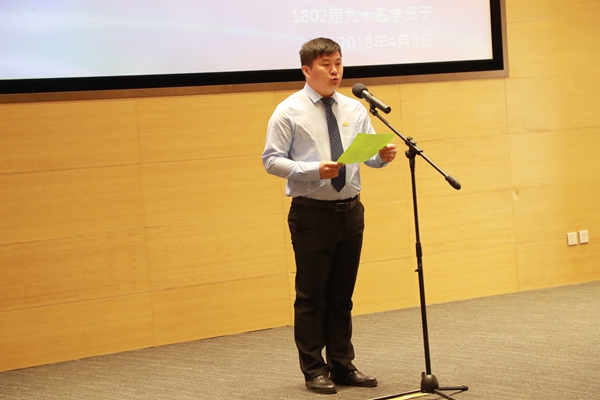 開(kāi)學(xué)典禮上,學(xué)員劉輝代表90名學(xué)員宣誓:在思創(chuàng)的搖籃里,苦心志,勞筋骨,擔(dān)當(dāng)大任。在思創(chuàng)的熔爐里,淬火提純,百煉成鋼。在思創(chuàng)的演習(xí)場(chǎng),摩拳擦掌,苦練本領(lǐng)。在陜煤轉(zhuǎn)型發(fā)展的主戰(zhàn)場(chǎng),熱愛(ài)煤炭,扎根礦山,不負(fù)韶光,奮斗人生。在陜煤追趕超越的競(jìng)技場(chǎng),根植工廠,愛(ài)崗奉獻(xiàn),鍛造才干,報(bào)效陜煤。思想如水,做人亦如水,能進(jìn)退,而知進(jìn)退。創(chuàng)造如山,做人亦如山,望萬(wàn)物,而容萬(wàn)物。做好自己,影響別人。以陜煤為重,以陜煤為榮,誓為陜煤做大事,成偉業(yè),貢獻(xiàn)畢生。