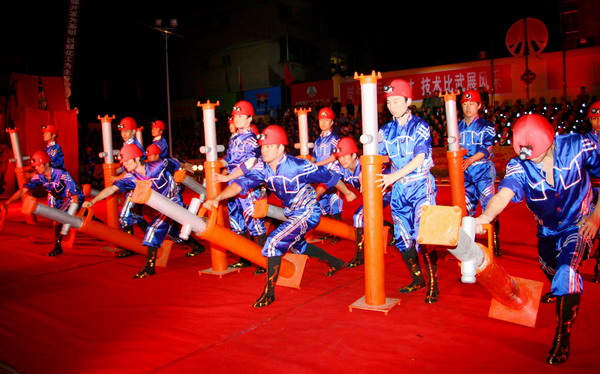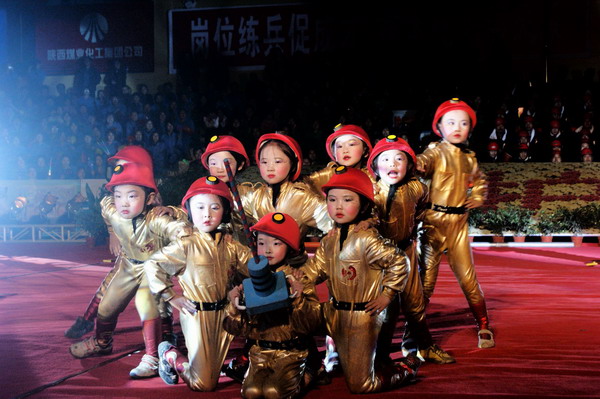 蒲白礦務(wù)局為開幕式精心準(zhǔn)備的異彩紛呈的文藝演出,在隆隆的打鼓聲中拉開帷幕,舞動(dòng)的長稠,鏗鏘的鼓點(diǎn),青春的舞步,一下子把活動(dòng)推上了第一個(gè)沸點(diǎn)。全部由礦山小伙子們出演的大型舞蹈《煤魂》,在燈光的配合下,現(xiàn)場的人們仿佛置身于百米井下,那長長的巷道,年輕的礦工把艱辛的勞動(dòng)演繹成歡樂的樂章,奏響了新時(shí)代礦山科學(xué)發(fā)展、奉獻(xiàn)社會(huì)的最強(qiáng)音。幼兒園小朋友參加演出的《眾人劃槳開大船》、矸石電廠職工現(xiàn)場演繹的“手指口述”交接、技工學(xué)校學(xué)生們表演的軍體操、建安處社區(qū)女工們的換了舞蹈、職工表演的小沈陽模仿秀……展現(xiàn)了礦區(qū)職工的意氣風(fēng)發(fā)、自信自強(qiáng)、敢作敢為的堅(jiān)強(qiáng)意志和精神風(fēng)貌。
