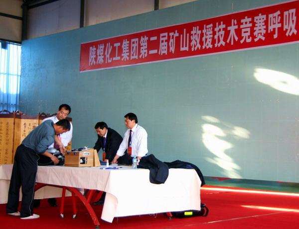 集團(tuán)公司第二屆礦山救援技術(shù)比武呼吸機(jī)操作項(xiàng)目現(xiàn)場