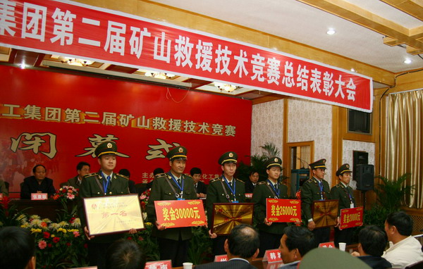 沙場秋點(diǎn)兵,戰(zhàn)旗別樣紅。這次比武是對集團(tuán)公司下屬煤礦救護(hù)隊(duì)素質(zhì)和戰(zhàn)斗力的一次大檢閱,也是一次煤礦事故應(yīng)急救援的實(shí)戰(zhàn)演練。來自七支救護(hù)隊(duì)的50余名隊(duì)員參加了理論考試、綜合體能、模擬救災(zāi)、醫(yī)療急救、呼吸器操作等5個(gè)項(xiàng)目的比賽。綜合最后成績,蒲白礦務(wù)局勇奪團(tuán)體第一名,澄合礦務(wù)局、銅川礦務(wù)局分獲二、三名,其余四個(gè)單位獲得優(yōu)勝獎(jiǎng)。在模擬救災(zāi)單項(xiàng)比賽中,蒲白礦務(wù)局、澄合礦務(wù)局、神南礦業(yè)公司和韓城礦務(wù)局取得了前三名;在醫(yī)療急救單項(xiàng)比賽中,銅川礦務(wù)局、蒲白礦務(wù)局、澄合礦務(wù)局分獲前三名。楊文君等15人在呼吸器操作、綜合體能、個(gè)人全能等三個(gè)項(xiàng)目的競賽中分別獲得前5名,受到表彰獎(jiǎng)勵(lì)。
