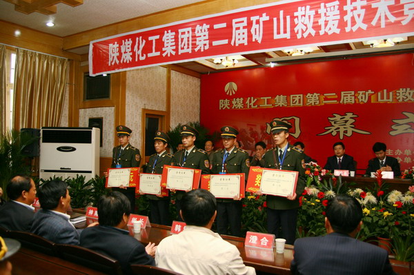金秋十月,秋高氣爽,氣候宜人。在舉國上下歡慶共和國建國60周年的喜慶日子里,在陜西煤業(yè)化工集團(tuán)公司全面實(shí)現(xiàn)全年安全生產(chǎn)目標(biāo)的“百日安全”活動(dòng)期間,10月15至18日,集團(tuán)公司第二屆礦山救援技術(shù)競賽活動(dòng)在蒲白礦務(wù)局隆重舉行。