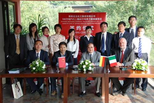 9月17日,在北京八達(dá)嶺長城腳下,北元集團(tuán)100萬噸/年聚氯乙烯循環(huán)綜合利用項(xiàng)目二期40萬噸/年離子膜燒堿電解槽簽字儀式隆重舉行。陜西北元化工集團(tuán)有限公司董事長李厚志、意大利伍德迪諾拉公司總裁舍文、中國天辰工程公司副總工程師楊克儉、中化建國際招標(biāo)有限責(zé)任公司經(jīng)理邵菲及相關(guān)人員參加了儀式。