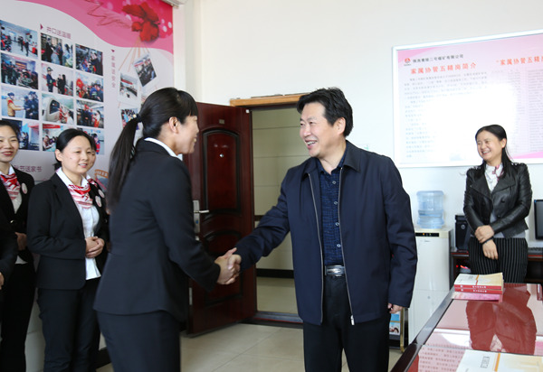調(diào)研期間,李向東通過現(xiàn)場走訪和座談交流的方式詳細了解了女職工家屬安全協(xié)管、群安工作、礦區(qū)學(xué)雷鋒便民服務(wù)活動、工會組織建設(shè)、礦區(qū)文化設(shè)施建設(shè)、群眾性文化娛樂活動組織開展等情況,慰問了堅守在煤礦第一線的女職工家屬安全協(xié)管員和她們中的全國先進模范。他先后和兩個礦區(qū)的家屬安全協(xié)管員和群安員進行了座談交流。參加座談會的有年齡最大的65歲、堅守在協(xié)管陣地30多年的銅川下石節(jié)礦協(xié)管員高桂鳳,有90后專職家屬協(xié)管員、今年26歲的黃陵二號煤礦李丹,有第六屆全國孝老愛親道德模范、黃陵礦業(yè)公司二號煤礦專職家屬協(xié)管員張紅萍,還有70后、80后群安員代表葉虎民、魏璐等,大家一致表示要繼續(xù)做好協(xié)管安全工作,做一名礦山最溫暖的女人和默默無聞的安全衛(wèi)士。