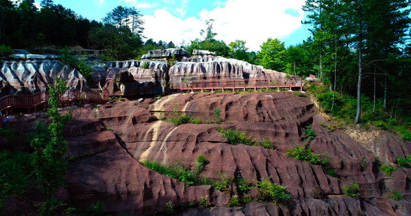 陜西漢中黎坪地質(zhì)公園園區(qū)面積56km2 ,公園是以中奧陶紀寶塔組紅色網(wǎng)紋泥灰?guī)r形成的龍鱗構造和龍脊地貌、石柱、石墻、巖溶城堡以及中華震旦角石等重要古生物化石為主體,并有二疊系巖溶峰林地貌和峽谷、石崖、瀑布等地貌和水文景觀,園區(qū)內(nèi)地質(zhì)遺跡類型豐富、級別高、價值大。內(nèi)有地質(zhì)遺跡80余處,其中屬于國家級的地質(zhì)遺跡有52處,省級地質(zhì)遺跡點有28處。該園區(qū)融合濃郁的陜南巴山人文風情和歷史遺址,集科學考察、科普教育、游覽觀光、生態(tài)農(nóng)業(yè)旅游、休閑度假為一體的多功能地質(zhì)公園。