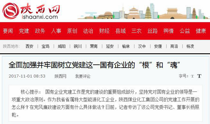 國(guó)有企業(yè)黨建工作是黨的建設(shè)的重要組成部分,堅(jiān)持黨對(duì)國(guó)有企業(yè)的領(lǐng)導(dǎo)是一項(xiàng)重大政治原則。作為我省省屬特大型能源化工企業(yè),陜西煤業(yè)化工集團(tuán)公司的黨建工作開展的怎么樣?在黨風(fēng)廉政建設(shè)方面有什么具體做法?日前,記者專訪了該公司黨委書記、董事長(zhǎng)楊照乾。
