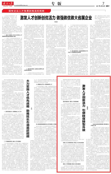 陜西日報: 楊照乾署名文章 激發(fā)人才創(chuàng)新活力 引領(lǐng)陜煤轉(zhuǎn)型升級