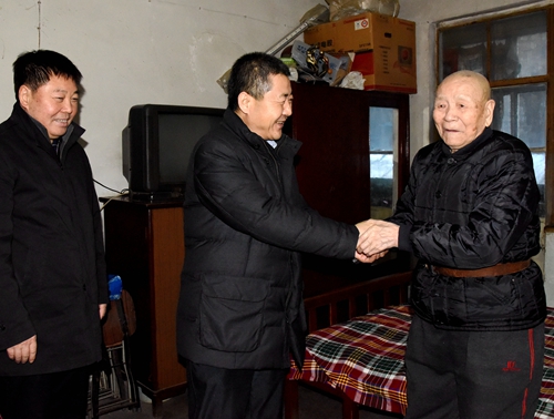 隨后,慰問99歲高齡的老黨員張風(fēng)光時(shí),老人緊緊握住胡保存的手,激動(dòng)地說:“感謝你們?cè)诎倜χ锌赐?,太感謝了”。胡主任深切回應(yīng):“您為新中國(guó)的建設(shè)付出了艱辛和努力,黨和政府不會(huì)忘記你們的”。
