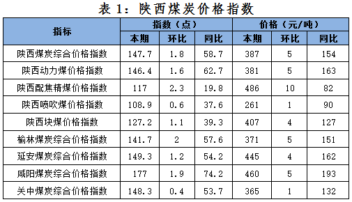 一、本期陜西煤炭?jī)r(jià)格指數(shù)及代表規(guī)格品價(jià)格情況