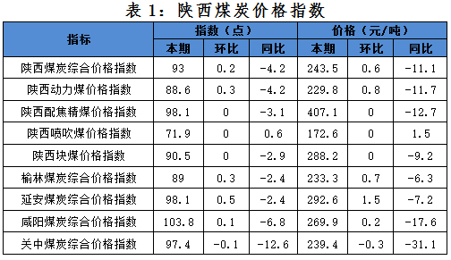 二、本期市場分析2016年7月22日陜西煤炭綜合價格指數(shù)為93點(diǎn),環(huán)比上期上漲0.2點(diǎn),同比下跌4.2點(diǎn),對應(yīng)陜西煤炭綜合價格243.5元/噸,環(huán)比上期上漲0.6元/噸,同比下跌11.1元/噸。其中分品種:動力煤指數(shù)88.6點(diǎn),較上期上漲0.3點(diǎn);配焦精煤指數(shù)98.1點(diǎn),較上期持平;噴吹煤指數(shù)71.9點(diǎn),較上期持平;塊煤指數(shù)90.5點(diǎn),較上期持平;分區(qū)域:榆林指數(shù)89點(diǎn),較上期上漲0.3點(diǎn);延安指數(shù)98.1,較上期上漲0.5點(diǎn);咸陽指數(shù)103.8點(diǎn),較上期上漲0.1點(diǎn);關(guān)中指數(shù)97.4點(diǎn),較上期下跌0.1點(diǎn)。