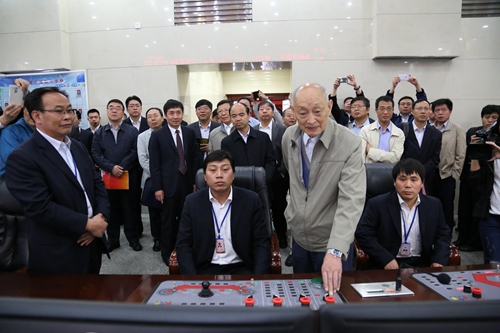 與會人員觀摩了1003智能化綜采工作面集控系統(tǒng)確認和一鍵啟動設(shè)備安全確認,通過監(jiān)視器了解了黃陵礦業(yè)公司智能化礦山建設(shè)情況,近距離地感受了科技進步在煤炭工業(yè)升級轉(zhuǎn)型和安全發(fā)展中的強大支撐引領(lǐng)作用。隨后,宋振琪一鍵啟動1003智能化綜采工作面采煤機,現(xiàn)場一片掌聲。