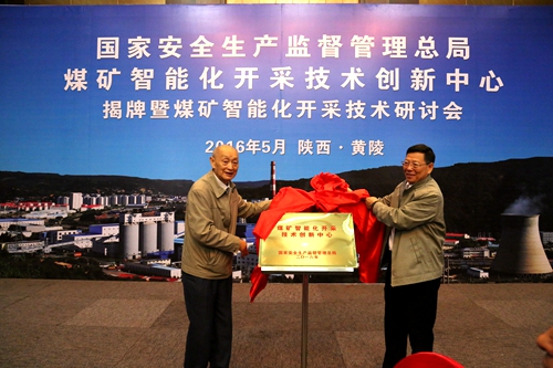 5月28日,國家安監(jiān)總局煤礦智能化開采技術(shù)創(chuàng)新中心揭牌暨煤礦智能化開采技術(shù)研討會在黃陵礦業(yè)公司舉行,全國首家煤礦智能化開采技術(shù)創(chuàng)新中心落戶黃陵礦區(qū)。國家安全生產(chǎn)監(jiān)督管理總局原黨組成員、總工程師,中國橋梁協(xié)會會長王樹鶴,中國煤炭工業(yè)協(xié)會副會長劉峰,國家安全生產(chǎn)監(jiān)督管理總局科技規(guī)劃司原司長、安全生產(chǎn)監(jiān)察專員施衛(wèi)祖,中國煤炭科工集團有限公司董事長王金華,陜煤化集團副總經(jīng)理尚建選,黃陵礦業(yè)公司黨委書記、董事長范京道,黨委副書記、總經(jīng)理師永貴出席儀式,來自國家安監(jiān)總局、中國煤炭工業(yè)協(xié)會、科研院所、陜煤化集團和兄弟單位的40多名領(lǐng)導和專家參加會議。
