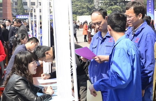 3月28日,在韓城礦業(yè)公司辦公樓前隆重舉辦了“韓城市去產(chǎn)能萬名產(chǎn)業(yè)工人培訓(xùn)就業(yè)計(jì)劃啟動(dòng)儀式暨韓城礦業(yè)公司分流人員招聘會(huì)”。市委市政府組織66家企業(yè)參加了專場招聘會(huì)。來自韓城礦業(yè)公司的千余名求職者參加了此次招聘會(huì),當(dāng)天達(dá)成意向者865人。其中,應(yīng)聘政府開發(fā)崗位的共有346人(公益崗位136人,購買崗位93人,組織協(xié)調(diào)產(chǎn)業(yè)崗位117人),應(yīng)聘其他各類企業(yè)的共有519人。