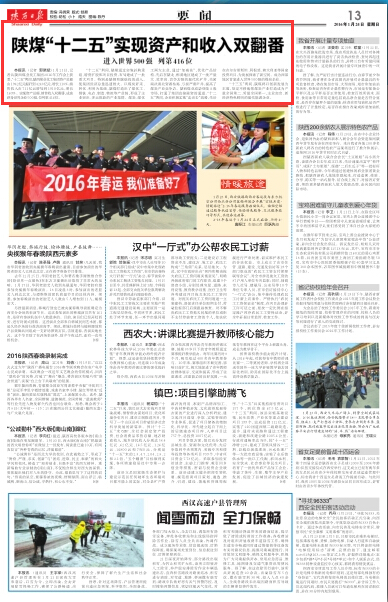 陜煤“十二五”實(shí)現(xiàn)資產(chǎn)和收入雙翻番