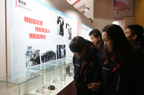 在本次成果展中,集團(tuán)公司以理念篇、視覺篇、載體篇、成果片、展望篇為綱,用視頻、實(shí)物、圖片并輔以文字的方式,全方位地展示了企業(yè)在近年來文化建設(shè)方面的成果和心得。尤其對(duì)于“特別能吃苦特別能戰(zhàn)斗 特別能奉獻(xiàn)”這一傳統(tǒng)文化基因的回顧,再現(xiàn)了崢嶸歲月中的陜煤人篳路藍(lán)縷、手足胼胝的創(chuàng)業(yè)艱辛。對(duì)于文化建設(shè)八大工程的一一呈現(xiàn),更具象地體現(xiàn)了文化之于現(xiàn)代企業(yè)建設(shè)更加潛移默化而不可或缺地作用,吸引了大量參觀者的駐足關(guān)注。