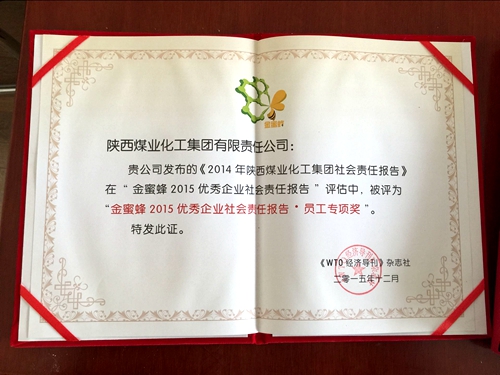 陜煤化集團(tuán)獲“金蜜蜂2015優(yōu)秀企業(yè)社會(huì)責(zé)任報(bào)告·員工專項(xiàng)獎(jiǎng)”