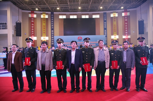 本次競賽共有來之地方煤礦和陜煤化集團(tuán)所屬的煤礦、化工和鋼鐵板塊的19支專業(yè)礦山救援隊(duì)和救護(hù)消防隊(duì),共380多人參與競技。經(jīng)過三天激烈的比拼,在第五屆礦山救援競賽中,銅川礦業(yè)公司救護(hù)大隊(duì)包攬模擬救災(zāi)和醫(yī)療急救兩個單項(xiàng)第一名,并取得團(tuán)體成績第一名的佳績。澄合礦業(yè)公司救護(hù)大隊(duì)、彬長礦業(yè)公司救援中心分獲團(tuán)體成績第二名和第三名;澄合礦業(yè)公司救護(hù)大隊(duì)獲得模擬救災(zāi)項(xiàng)目第二名,神南礦業(yè)公司救護(hù)大隊(duì)、韓城礦業(yè)公司救護(hù)大隊(duì)并列模擬救災(zāi)項(xiàng)目第三名;醫(yī)療急救項(xiàng)目第二名由澄合礦業(yè)公司救護(hù)大隊(duì)獲得,蒲白礦業(yè)公司救護(hù)消防大隊(duì)、黃陵礦業(yè)公司救護(hù)消防大隊(duì)并列該項(xiàng)目第三名。獲得呼吸器操作、綜合體能、個人全能三個項(xiàng)目前五名的參賽隊(duì)員也受到了大會的表彰。同時,大會還對參賽的地方礦山救援隊(duì)伍的獲獎團(tuán)體和個人進(jìn)行表彰。第二屆救護(hù)消防技術(shù)競賽團(tuán)體第一名由黃陵礦業(yè)公司救護(hù)消防隊(duì)奪得,陜西北元化工集團(tuán)公司救護(hù)消防隊(duì)、陜西渭河煤化工集團(tuán)公司救護(hù)消防隊(duì)分獲團(tuán)體第二名和第三名;陜西渭河煤化工集團(tuán)公司救護(hù)消防隊(duì),陜西陜化化工集團(tuán)公司救護(hù)消防隊(duì),陜西鋼鐵集團(tuán)公司救護(hù)消防隊(duì)分獲模擬救災(zāi)項(xiàng)目前三名;綜合體能項(xiàng)目前三名由神木煤化工產(chǎn)業(yè)公司救護(hù)消防隊(duì)、黃陵礦業(yè)公司救護(hù)消防隊(duì)、陜西北元化工集團(tuán)公司救護(hù)消防隊(duì)獲得。大會表彰了獲得綜合體能、理論考試兩個項(xiàng)目前五名的參賽隊(duì)員。出席閉幕式的領(lǐng)導(dǎo)向獲獎代表隊(duì)和個人頒發(fā)了獎牌和證書。