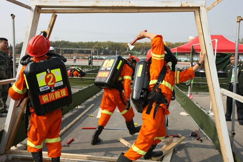 為全面檢驗(yàn)礦山救援和救護(hù)消防隊(duì)伍技戰(zhàn)水平,檢閱救援隊(duì)伍素質(zhì),提升救援實(shí)戰(zhàn)能力,10月19日--22日,由陜西煤礦安全監(jiān)察局、陜西煤業(yè)化工集團(tuán)共同主辦的第五屆礦山救援和第二屆救護(hù)消防技術(shù)競賽,在國家區(qū)域礦山應(yīng)急救援銅川基地——銅川礦業(yè)公司礦山救護(hù)大隊(duì)舉行。陜西煤礦安全監(jiān)察局黨組成員、巡視員高勤社、陜西省安全生產(chǎn)監(jiān)督管理局黨組成員、副局長陳存德、陜煤化集團(tuán)公司副總經(jīng)理閔龍、銅川礦業(yè)公司執(zhí)行董事、總經(jīng)理王蓬、銅川礦業(yè)公司黨委書記郭寶輝,省安監(jiān)局、煤監(jiān)局、煤管局、銅川市消防支隊(duì)、榆林市安監(jiān)局、神木縣煤炭局、陜煤化集團(tuán)有關(guān)部門負(fù)責(zé)同志和集團(tuán)所屬單位分管應(yīng)急救援工作的同志,以及地方和陜煤化集團(tuán)參加競賽的救援隊(duì)與現(xiàn)場觀眾參加了開、閉幕式。