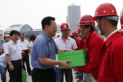 7月27日,陜煤化集團公司黨委副書記、工會主席馬富元一行3人,來到建設(shè)集團和西安煤機公司老廠區(qū),看望慰問奮斗在生產(chǎn)一線的職工,為他們送去了西瓜、飲料、防暑藥品等慰問品。。