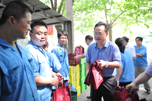 在西安煤機公司,馬富元一行先后來到該公司生產(chǎn)環(huán)境最為艱苦的金屬結(jié)構(gòu)車間和熱處理車間,每到一處,他與工人們親切握手交談,并一一送上毛巾、涼茶等物品,對大家在高溫天仍堅守在生產(chǎn)一線表示慰問和感謝。隨后馬富元分別察看了兩個車間的生產(chǎn)情況,詢問車間的生產(chǎn)任務(wù),了解職工各項權(quán)益保障情況。