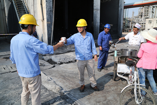 在建設(shè)集團,馬富元同基地項目部一線職工逐一握手并親切交談,詢問了項目部近期運行情況和值班人員的生產(chǎn)生活情況,并再三叮囑值班人員“打鐵還需自身硬”,生活中,一定要照顧好身體,做好防暑降溫工作,以飽滿的激情投入工作;針對近期高溫、大風等極端天氣,他要求項目部務(wù)必要超前謀劃、精心部署、精細管理,確保公司安全生產(chǎn)以及員工生產(chǎn)生活的正常開展。