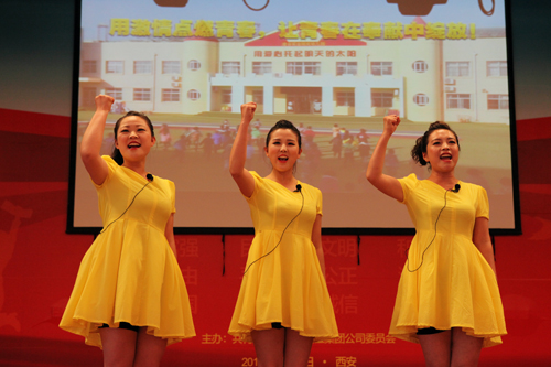 伴隨著一曲激蕩人心的鼓舞《中國龍》,展演活動正式拉開了序幕。隨后一個個節(jié)目閃亮登場,內(nèi)容鮮活、異彩紛呈。由銅川礦業(yè)公司演繹的情景劇《煤海深處舞動的“小紅帽”》,以陜西煤化青年志愿者活動為主線,賦予了傳統(tǒng)文化和傳統(tǒng)美德新的時代符號;彬長礦業(yè)公司帶來的朗誦《無悔的青春,我們?yōu)樽约捍浴?,用娓娓道來的講述,再現(xiàn)了陜西煤化青年人在奮斗成長過程中的堅定和執(zhí)著;澄合礦業(yè)公司的演講《我有一個溫暖的家》,用音詩畫結(jié)合的創(chuàng)新形式,彰顯了渭北老礦區(qū)青年人在破冰煤市寒冬過程中扎根企業(yè),尋夢未來的信心和決心;陜北礦業(yè)帶來的小品《辭職》,以在艱苦環(huán)境中磨練意志,干事創(chuàng)業(yè)為題,傳遞了在困難面前不低頭,挫折面前不氣餒的正能量;神南礦業(yè)公司選送的情景劇《謝謝你為我急救》,從一個突發(fā)事件的義施援手切入,折射了文明賦予社會的溫暖;北元化工公司奉獻(xiàn)的經(jīng)由網(wǎng)絡(luò)神曲改編的MTV《我的勞保鞋》,用敏銳的時尚嗅覺演繹了新一代化工團(tuán)隊的時尚元素……