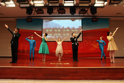 以“富強、民主、文明、和諧,自由、平等、公正、法制,愛國、敬業(yè)、誠信、友善”這十二個詞為主要內(nèi)容的社會主義核心價值觀是社會主義核心價值體系的內(nèi)核,是社會主義核心價值體系的高度凝練和集中表達(dá)。黨的十八大以來,中央高度重視培育和踐行社會主義核心價值觀。習(xí)近平總書記多次作出重要論述、提出明確要求,為加強社會主義核心價值觀教育實踐指明了努力方向,提供了重要遵循。去年,共青團(tuán)中央發(fā)出“我為社會主義核心價值觀代言”主題實踐活動的號召,并在廣大青少年中部署開展“我的中國夢--奮斗的青春最美麗”系列分享活動。積極響應(yīng)團(tuán)中央和團(tuán)省委的工作部署,去年以來,陜西煤業(yè)化工集團(tuán)公司團(tuán)委在各級團(tuán)組織、廣大團(tuán)員青年中開展了“我為核心價值觀代言”主題宣傳教育活動。活動開展以來,涌現(xiàn)出了一大批助人為樂、見義勇為、誠實守信、敬業(yè)奉獻(xiàn)、孝老愛親等方面的先進(jìn)人物,促進(jìn)了社會公德、職業(yè)道德、家庭美德和個人品德建設(shè),展現(xiàn)了良好的團(tuán)隊精神和企業(yè)發(fā)展的正能量。今年,集團(tuán)公司團(tuán)委再次把“我為社會主義核心價值觀代言”主題實踐活動向縱深推進(jìn),要求把開展“我為社會主義核心價值觀代言”主題實踐活動作為全年工作的重要抓手,把握精神內(nèi)核,廣泛開展學(xué)習(xí)宣傳教育;深入挖掘潛力,全力做好活動組織; 提升思想境界,融入發(fā)展大局,精心部署,持續(xù)推進(jìn)。本次展演活動正是全年活動的一個部分,用廣大青年員工喜聞樂見的活動形式,為社會主義核心價值觀在青年群體中的廣泛傳播搭建了平臺。