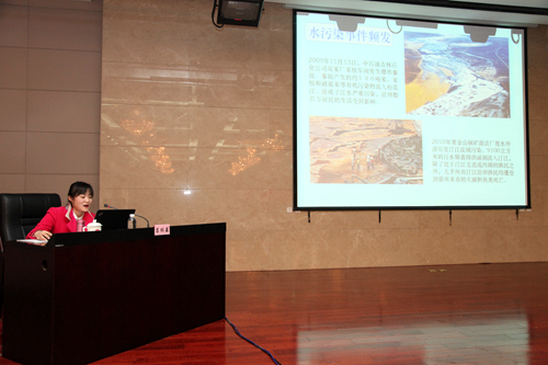 上午,來自省環(huán)保廳法規(guī)處的呂秀蕓老師從環(huán)保法體系框架、修訂過程、新環(huán)保法總體框架及主要內(nèi)容等四個(gè)方面進(jìn)行了講解。并結(jié)合我國(guó)目前水、大氣、土地的污染現(xiàn)狀,和環(huán)境質(zhì)量惡化加劇、突發(fā)環(huán)境事件集中爆發(fā),環(huán)境群體性事件不斷發(fā)生的新趨勢(shì),對(duì)環(huán)境保護(hù)的重要意義進(jìn)行了分析。