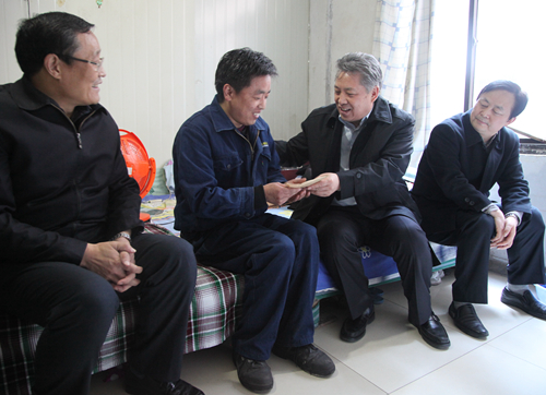 2月4日,陜煤化集團副總經(jīng)理閔龍在煤層氣公司總經(jīng)理張康順的陪同下,到澄合天宇公司慰問困難職工 。