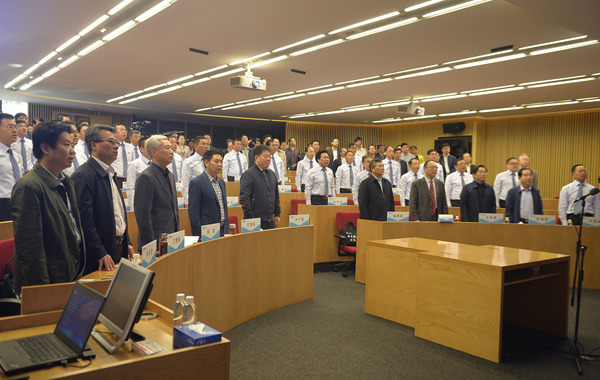 開學(xué)典禮在莊嚴(yán)的國歌聲中拉開帷幕,陜煤集團(tuán)董事、陜煤思創(chuàng)學(xué)院執(zhí)行院長付戰(zhàn)超向?qū)W員代表張維新授旗,學(xué)員徐五才代表全體學(xué)員宣誓,陜煤集團(tuán)黨委書記、董事長、陜煤思創(chuàng)學(xué)院院長楊照乾對(duì)學(xué)員發(fā)布了訓(xùn)令。