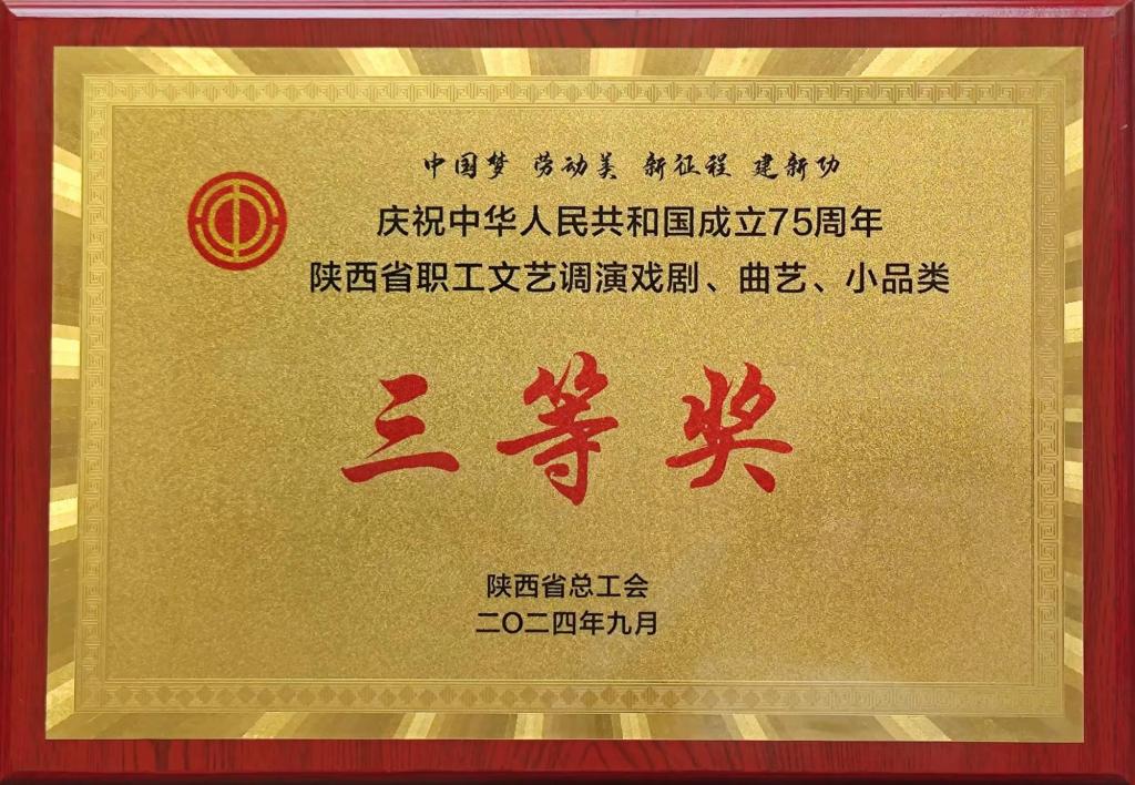 10月25日,由陜西省總工會主辦的“慶祝中華人民共和國成立75周年”陜西省職工文藝調(diào)演頒獎典禮隆重舉行。公司選送的舞蹈類節(jié)目《我們的芳華》、音樂類節(jié)目《我唱山歌給黨聽》榮獲二等獎,選送的情景劇《唱支山歌給黨聽》獲得小品曲藝類三等獎。
