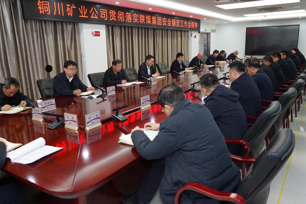 1月22日上午,公司在信息調(diào)度中心四樓會議室召開專題會議,認(rèn)真學(xué)習(xí)貫徹集團(tuán)安全穩(wěn)定工作視頻會、陜西煤業(yè)煤礦救護(hù)工作座談會精神,按照陜煤集團(tuán)、陜西煤業(yè)部署要求,緊密結(jié)合公司實(shí)際,就抓好春節(jié)和當(dāng)前礦區(qū)安全穩(wěn)定工作進(jìn)行安排部署。公司領(lǐng)導(dǎo)班子成員、機(jī)關(guān)部室負(fù)責(zé)人參加會議。