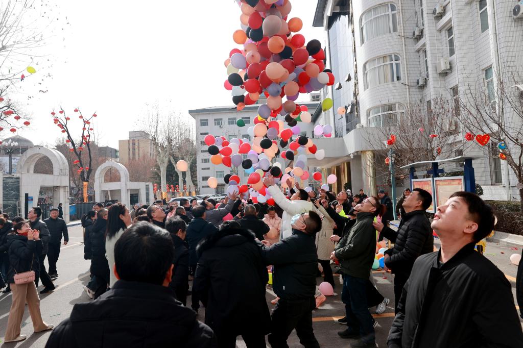 在“踩氣球”環(huán)節(jié),隨著掛于機(jī)關(guān)院的五彩氣球落下,瞬時(shí)點(diǎn)燃了活動(dòng)的熱潮,大家紛紛跑進(jìn)氣球掉落區(qū)域用力踩腳氣球,“幸運(yùn)者”還獲得了氣球里放置的獎(jiǎng)品,為新年新的開始贏得“好彩頭”。