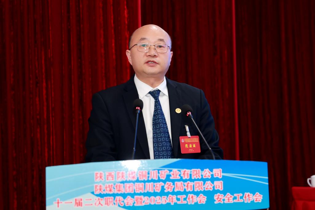 陜西煤業(yè)副總經(jīng)理張森,公司黨委書記、董事長路根奎出席會議并講話,公司黨委副書記、董事、總經(jīng)理雷鐵山在會上作了題為《真抓實干謀突破 賡續(xù)事業(yè)勇?lián)?dāng) 奮力開創(chuàng)新時代銅煤高質(zhì)量發(fā)展新局面》的工作報告,并代表公司與四對生產(chǎn)礦井、冶坪分公司主要負(fù)責(zé)同志簽訂了2025年度安全生產(chǎn)責(zé)任狀。公司董事、副總經(jīng)理邢彥民作了題為《突出事前預(yù)防狠抓工作落實 以高水平安全保障公司高質(zhì)量發(fā)展》的安全工作報告。公司黨委副書記、董事、工會主席許江濤主持第一次全體會議,并代表職工方與企業(yè)方代表簽訂了《2025年工資集體合同》。公司黨委常委、紀(jì)委書記權(quán)恒主持第二次全體會議。公司總工程師岳東、副總經(jīng)理梁銳、總會計師文永兵分別宣讀了《關(guān)于表彰2024年度安全生產(chǎn)先進集體和先進個人的決定》《關(guān)于安全生產(chǎn)特別嘉獎的決定》《關(guān)于表彰2024年度單項工作成效顯著單位、部門的決定》。公司副總經(jīng)理李樹深作了《十一屆一次職代會提案落實及十一屆二次職代會提案征集情況報告》。會議還表決通過了十一屆職代會專門工作委員會增替補委員名單和大會決議,并通報了民主評議公司領(lǐng)導(dǎo)班子和領(lǐng)導(dǎo)人員結(jié)果。會議以現(xiàn)場+視頻方式召開,設(shè)一個主會場和7個分會場,來自公司各條戰(zhàn)線的職工代表,參會的列席代表和受表彰的先進集體代表,共計190人在煤業(yè)賓館主會場參加了會議。290多名干部職工以視頻會議的方式在分會場聆聽了會議。
