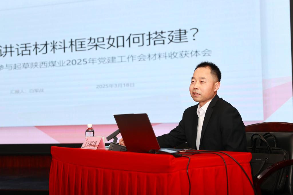 宣貫會上,由抽調(diào)參與陜西煤業(yè)年度工作會相關材料起草工作的公司綜合管理部秘書白軍戰(zhàn)結(jié)合個人的見聞體會、思考感悟和學習領會陜西煤業(yè)年度工作會精神的情況,重點對陜西煤業(yè)2025年工作會、黨建工作會精神作了深入細致的學習宣貫,使大家進一步加深了對陜西煤業(yè)年度工作會、黨建工作會精神的學習領會,進一步增強了認真按照集團公司黨政對陜西煤業(yè)提出的“五個新要求”和“五個必須”的工作要求,以更實的舉措,緊扣煤炭板塊2025年“一個目標、兩個基礎、三個支撐、四種理念、五型創(chuàng)建、九項任務”的工作思路,聚焦重點工作任務,抓好工作落實的責任意識、思想自覺和行動自覺。
