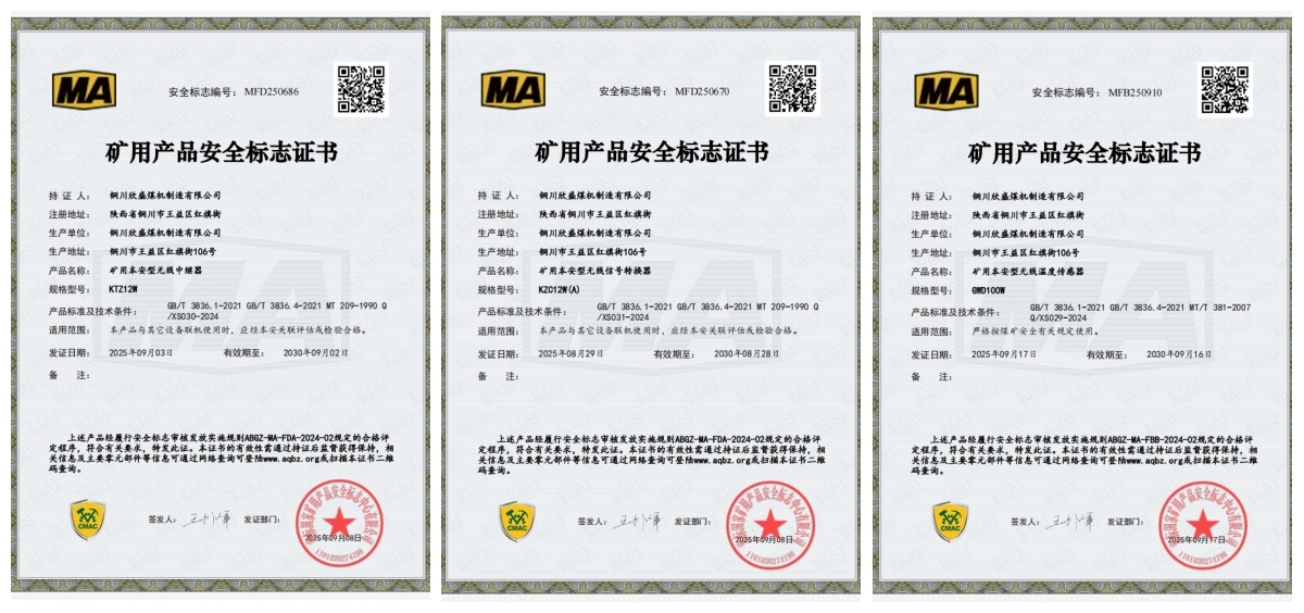 近日,銅川欣盛煤機(jī)公司合作研發(fā)的采空區(qū)無(wú)線火災(zāi)預(yù)警系統(tǒng)順利通過(guò)國(guó)家礦用產(chǎn)品安全標(biāo)志認(rèn)證并頒發(fā)證書(shū)。該系統(tǒng)包含礦用本安型無(wú)線信號(hào)轉(zhuǎn)換器、礦用本安型無(wú)線溫度傳感器和礦用本安型無(wú)線中繼器共三款核心產(chǎn)品,標(biāo)志著該技術(shù)已具備全面推廣與井下應(yīng)用條件,為煤礦企業(yè)采空區(qū)防滅火工作提供新的解決方案。