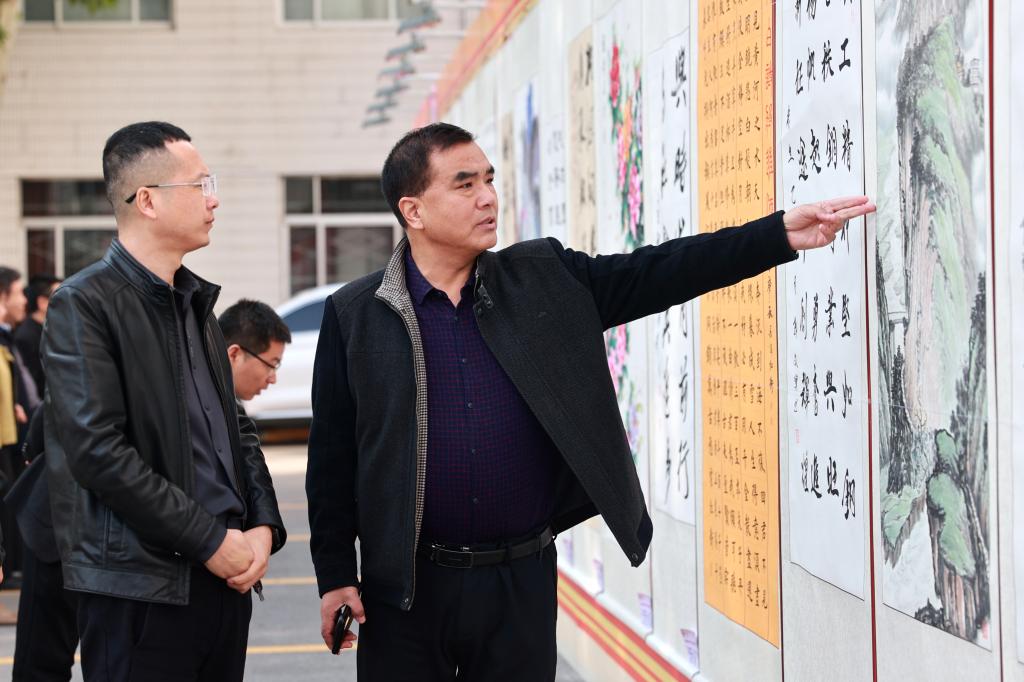 展覽中,一幅幅精美的書畫作品錯落有致地懸掛在機(jī)關(guān)樓兩邊,吸引了眾多職工與藝術(shù)愛好者駐足欣賞。在書法作品區(qū),有的作品筆鋒剛勁有力,彰顯出企業(yè)勇往直前的磅礴氣勢;有的作品則筆法飄逸靈動,以詩詞歌賦的形式抒發(fā)著職工對企業(yè)的熱愛與贊美之情。美術(shù)作品區(qū)同樣精彩紛呈,色彩斑斕的畫作,生動描繪了現(xiàn)代化礦區(qū)的嶄新風(fēng)貌和礦工們的工作與生活場景,傳遞出一代代銅煤礦工特別能吃苦、特別能戰(zhàn)斗、特別能奉獻(xiàn)的“三特” 精神。