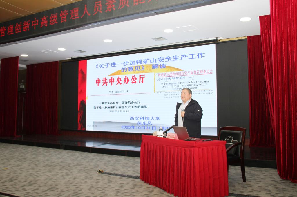 贠東風(fēng)教授圍繞兩辦《意見》《八條硬措施》及安全生產(chǎn)治本攻堅(jiān)標(biāo)準(zhǔn)展開解讀,結(jié)合礦山領(lǐng)域安全生產(chǎn)工作實(shí)際,梳理政策核心要求,剖析防范遏制礦山重特大事故的關(guān)鍵舉措,明確企業(yè)落實(shí)安全生產(chǎn)責(zé)任的重點(diǎn)方向,為參訓(xùn)人員精準(zhǔn)把握政策內(nèi)涵、推動(dòng)政策落地提供指導(dǎo)。并聚焦煤礦安全生產(chǎn)與綠色標(biāo)準(zhǔn)協(xié)同機(jī)制,深入講解二者融合的重要意義與實(shí)踐路徑,闡述如何在保障安全生產(chǎn)的同時(shí),推進(jìn)綠色礦山建設(shè),助力企業(yè)實(shí)現(xiàn)安全與綠色發(fā)展的雙贏,為公司中高級(jí)管理人員優(yōu)化管理思路、提升統(tǒng)籌能力提供了專業(yè)支撐。