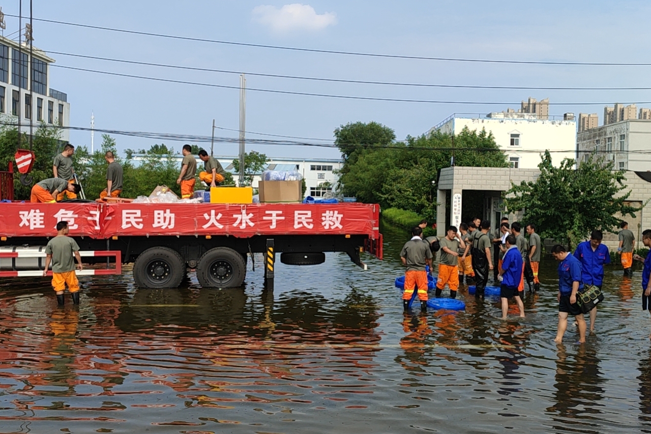 2021年7月,河南遭遇歷史罕見的特大暴雨,鄭州、新鄉(xiāng)等地城市內(nèi)澇嚴(yán)重,群眾被困、交通中斷。接到上級馳援指令時,大隊正在開展訓(xùn)練,隊員們來不及收拾行李,僅用1小時就完成人員集結(jié)、裝備裝車,連夜冒雨火速馳援河南救災(zāi)現(xiàn)場。抵達(dá)新鄉(xiāng)后,隊員們立即投入戰(zhàn)斗。在衛(wèi)輝市某小區(qū),積水最深處達(dá)2米,隊員們背著老人、抱著孩子,往返數(shù)十次轉(zhuǎn)移被困群眾;在某工業(yè)園區(qū),為盡快排出廠房積水,隊員們連續(xù)48小時奮戰(zhàn)救災(zāi)區(qū)域,餓了就啃方便面,困了就打個盹。連續(xù)13天里,共完成3個區(qū)域、5個排澇點(diǎn)的救災(zāi)任務(wù),排水總量約16萬立方米,轉(zhuǎn)移群眾36人,解救被困車輛8臺,被當(dāng)?shù)厝罕娪H切稱為“來自陜西的救命恩人”。