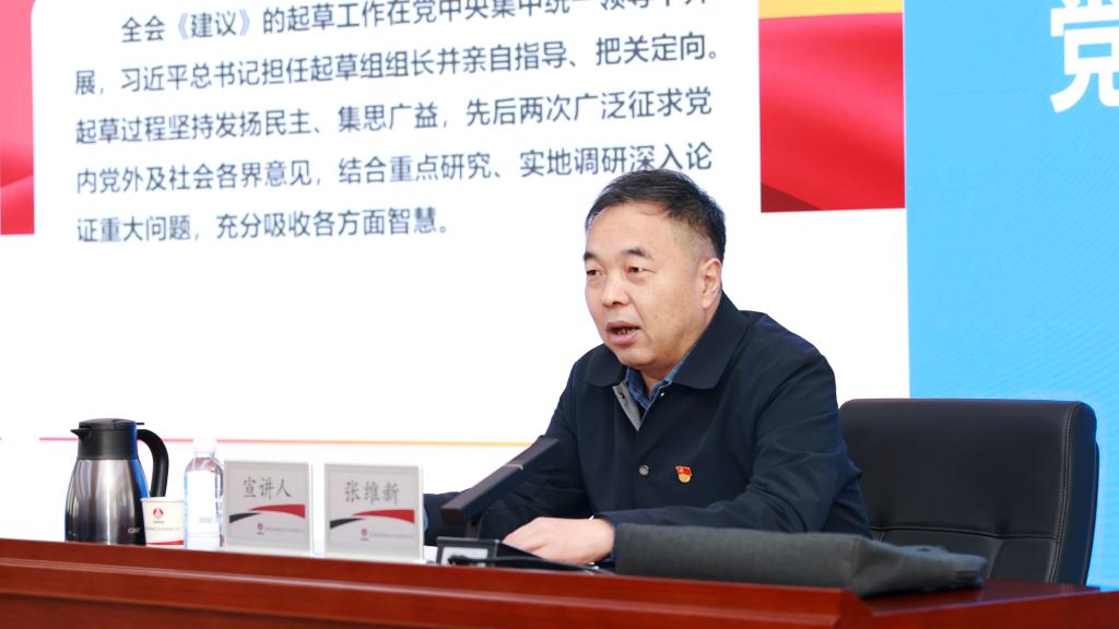 宣講中,張維新圍繞學(xué)習(xí)貫徹習(xí)近平總書記在黨的二十屆四中全會上的重要講話精神和《中共中央關(guān)于制定國民經(jīng)濟(jì)和社會發(fā)展第十五個(gè)五年規(guī)劃的建議》,從多個(gè)關(guān)鍵維度對全會精神進(jìn)行了系統(tǒng)講解與深入闡釋。宣講主題鮮明、邏輯嚴(yán)密,既立足國家發(fā)展大局,又緊密結(jié)合陜煤集團(tuán)、陜西煤業(yè)發(fā)展實(shí)際,聚焦高質(zhì)量發(fā)展核心任務(wù),既有深厚的理論高度,又有扎實(shí)的實(shí)踐深度,對全面系統(tǒng)掌握、深刻理解把握、準(zhǔn)確貫徹落實(shí)全會精神,具有十分重要的指導(dǎo)意義。