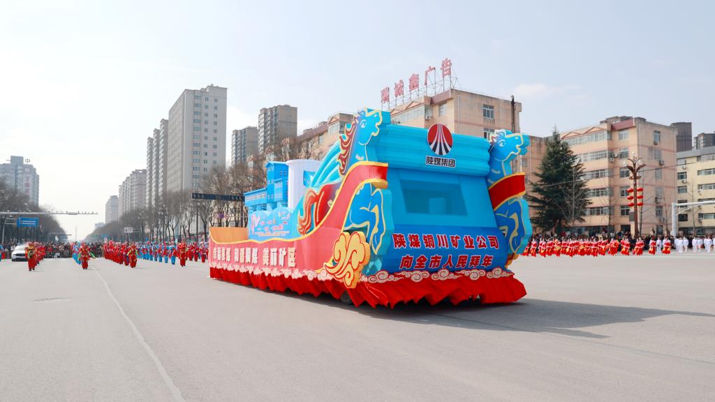 此次社火展演中,公司的工業(yè)藍(lán)主題彩車成為巡游隊(duì)伍中的一大亮點(diǎn)。彩車以象征礦業(yè)工業(yè)底蘊(yùn)與現(xiàn)代活力的工業(yè)藍(lán)為主底色,以馬踏祥云的造型為首部,以礦區(qū)標(biāo)志性建筑和“銅煤四個(gè)一”特色文化品牌為內(nèi)容,造型設(shè)計(jì)融合企業(yè)特色與時(shí)代元素,既彰顯了銅川礦業(yè)深耕煤海、實(shí)業(yè)興邦的產(chǎn)業(yè)根基,又融入了“幸福陜煤 和諧銅煤 美麗礦區(qū)”的發(fā)展愿景,既契合丙午馬年的喜慶氛圍,又寓意著銅川礦業(yè)在新的一年里策馬揚(yáng)鞭、奮勇爭(zhēng)先。車身醒目呈現(xiàn)“陜煤銅川礦業(yè)公司向全市人民拜年”的字樣,傳遞著企業(yè)對(duì)全市人民的新春祝福,以及扎根銅川、服務(wù)地方的深厚情懷。巡游途中,彩車緩緩駛過(guò)大街小巷,引得沿途群眾紛紛駐足觀賞、拍照留念,成為一道流動(dòng)的靚麗風(fēng)景線。