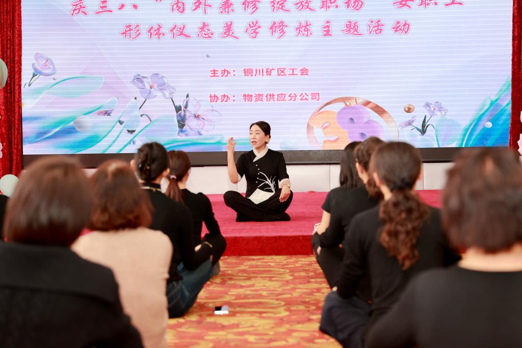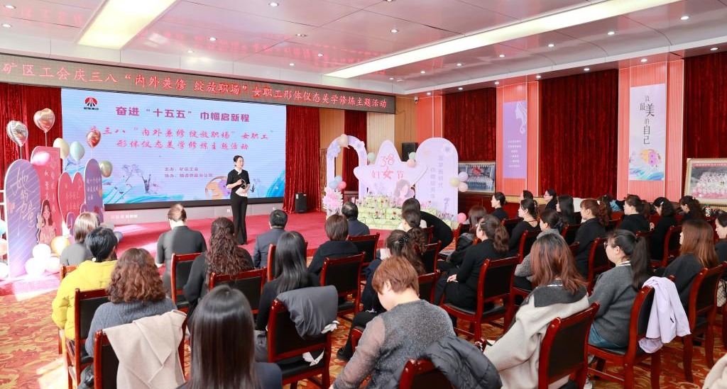 春風(fēng)送暖,萬象更新。為慶祝第116個“三八”國際婦女節(jié),進一步豐富女職工的精神文化生活,提升職業(yè)形象與內(nèi)在素養(yǎng),3月5日上午,礦區(qū)工會在供應(yīng)分公司舉辦了以“內(nèi)外兼修 綻放職場”為主題的女職工形體儀態(tài)美學(xué)修煉活動。來自礦區(qū)各單位的女工主任及女職工代表共計50人參加了此次活動。