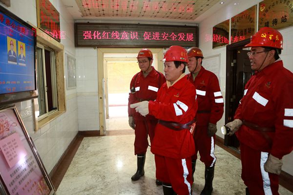 王蓬一行到礦后,首先到該礦井口安全信息站,查看了管理人員和區(qū)隊干部下井情況登記臺賬,了解了干部跟班下井排查隱患情況,并在井口礦嫂安全服務(wù)站,了解了女工家屬安全協(xié)管和群安工作開展情況,在礦燈自救器超市內(nèi),王蓬與工作人員親切交流,詢問了礦燈、自救器保養(yǎng)、使用和文明窗口服務(wù)活動開展情況,他還詳細了解了干部走動式管理、礦井安全生產(chǎn)風(fēng)險分級管控和隱患排查治理雙重預(yù)防機制落實、隱患問題排查治理等相關(guān)情況。