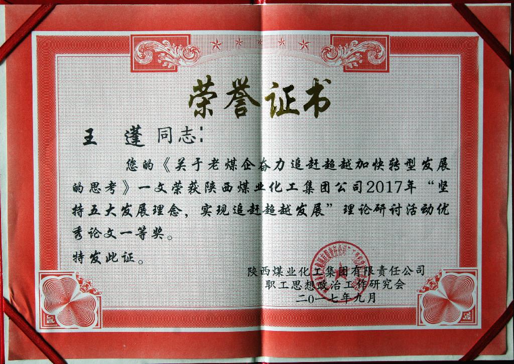 近日,陜煤集團(tuán)公司政研會2017年“堅持五大發(fā)展理念,實現(xiàn)追趕超越發(fā)展”理論研討活動優(yōu)秀理論文章和優(yōu)秀組織單位評比揭曉,公司被陜煤集團(tuán)評為年度理論研討活動優(yōu)秀組織獎,并有2篇論文分獲一等獎和優(yōu)秀獎。