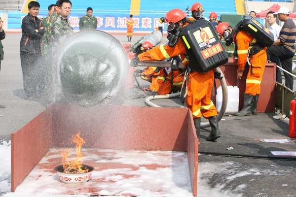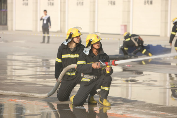 在當(dāng)日下午的模擬火災(zāi)現(xiàn)場救援競技比拼中,隨著指令發(fā)出,警笛鳴響,參賽的救護(hù)隊(duì)員備齊裝備、快速集結(jié),風(fēng)馳電掣地登上救援車輛迅速趕赴救援現(xiàn)場,在團(tuán)結(jié)奮戰(zhàn)和熟練操作中相繼完成火災(zāi)救援處置任務(wù)。
