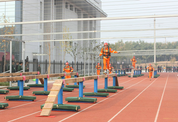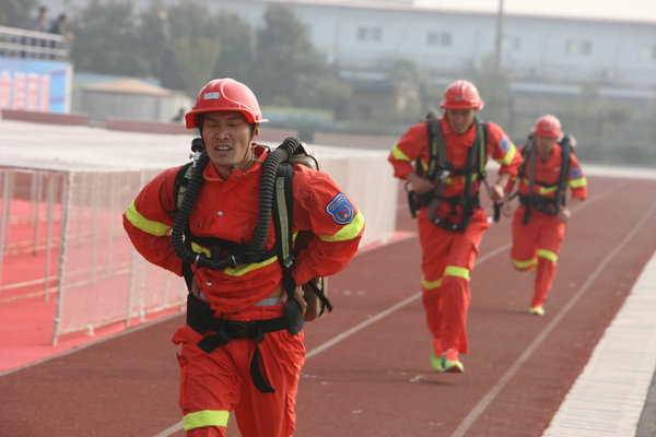 上午8時(shí)整,綜合體能賽拉開戰(zhàn)幕。參賽隊(duì)員6人一組,在完成高空爬繩后,迅速背起近二十公斤的呼吸器進(jìn)行千米奔跑,并要在途中穿越長15米的獨(dú)木橋,爬過20米的低巷,到達(dá)終點(diǎn)后,還需按規(guī)定每人拉重20公斤的檢力器50下,方能完成綜合體能的各個(gè)競技內(nèi)容。隨著比賽的深入進(jìn)行,賽場不時(shí)閃現(xiàn)參賽隊(duì)員有力的攀繩動(dòng)作,越橋的矯健身影,鉆巷的快捷熟練,奔跑的健步如飛,并以一道道力與美的弧線張揚(yáng)著救援隊(duì)員的奮斗精神和戰(zhàn)斗風(fēng)貌。