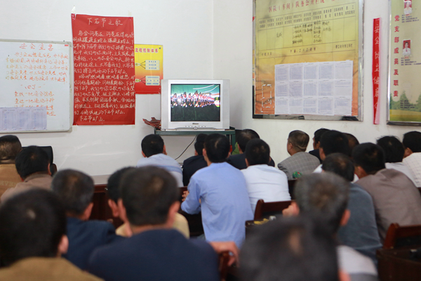 王石凹礦組織干群收看紀念抗戰(zhàn)勝利70周年大會盛況
