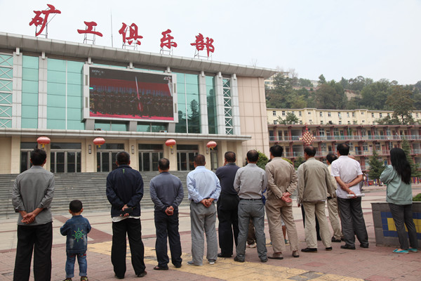 陳家山礦干部職工爭相觀看抗爭勝利70周年大會盛況